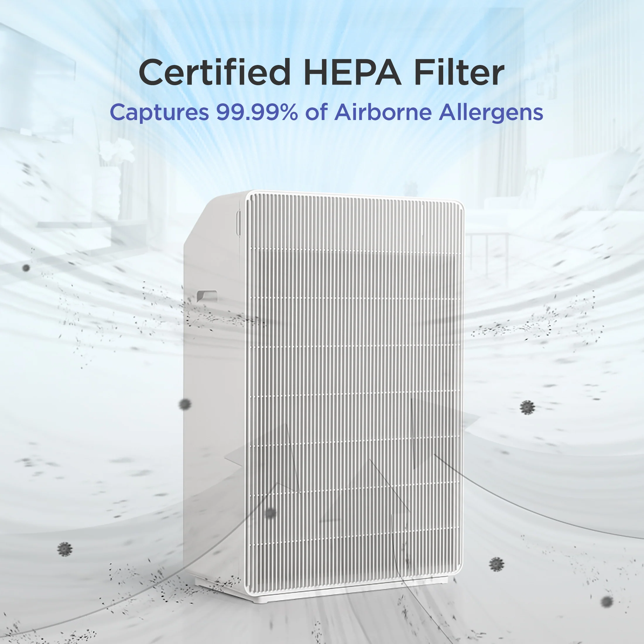- 3-STAGE FILTRATION:Â A pre-filter, H13 True HEPA filter, and activated carbon filter remove up to 99.97% of airborne particles including pet dander, smoke, odor, dust & more