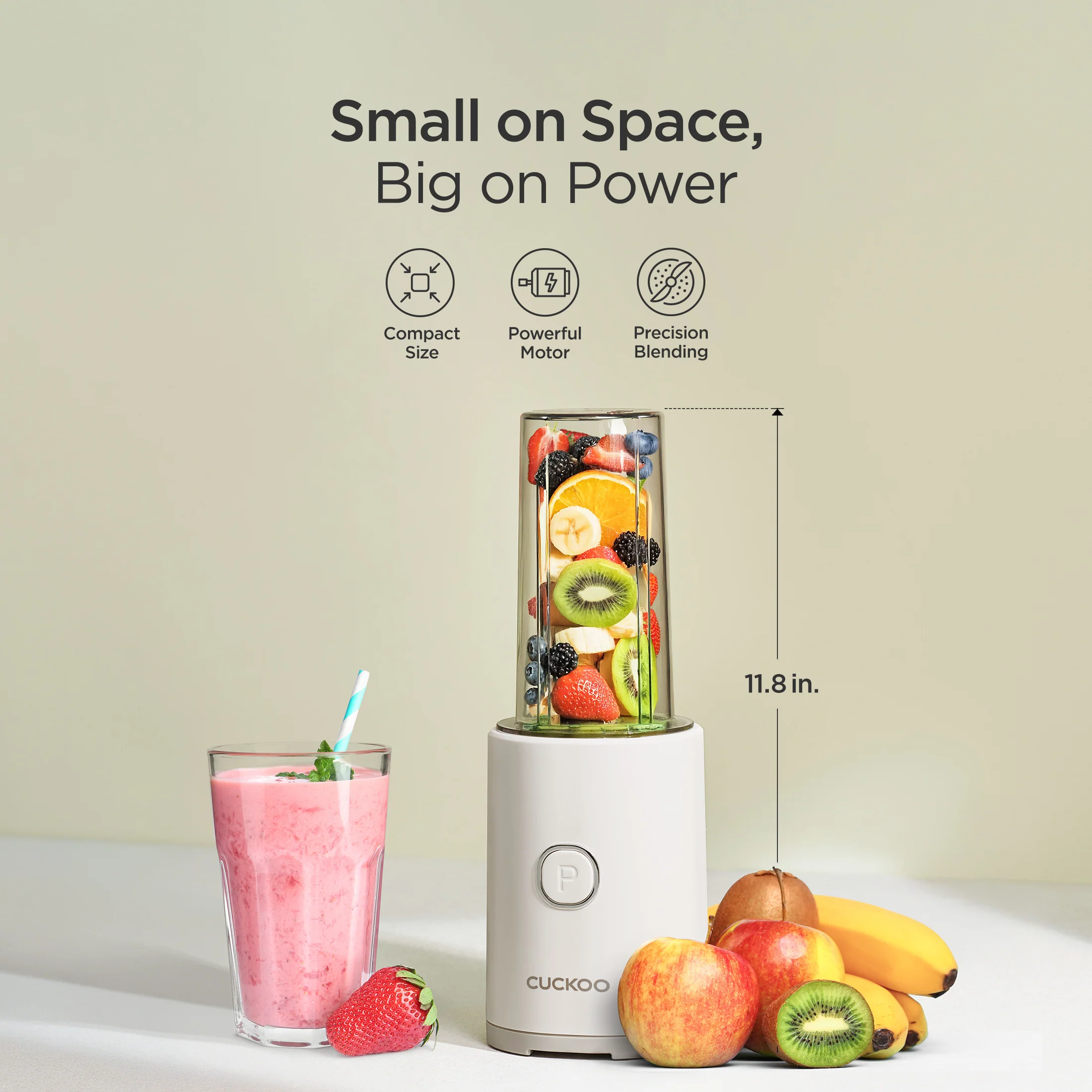 All the blending, none of the bulk. Size down with CUCKOO's Personal-Sized Blender while still enjoying all of your favorite smoothies and drinksâperfect for small apartments, small kitchens, or if you only have a couple of mouths to feed!Â